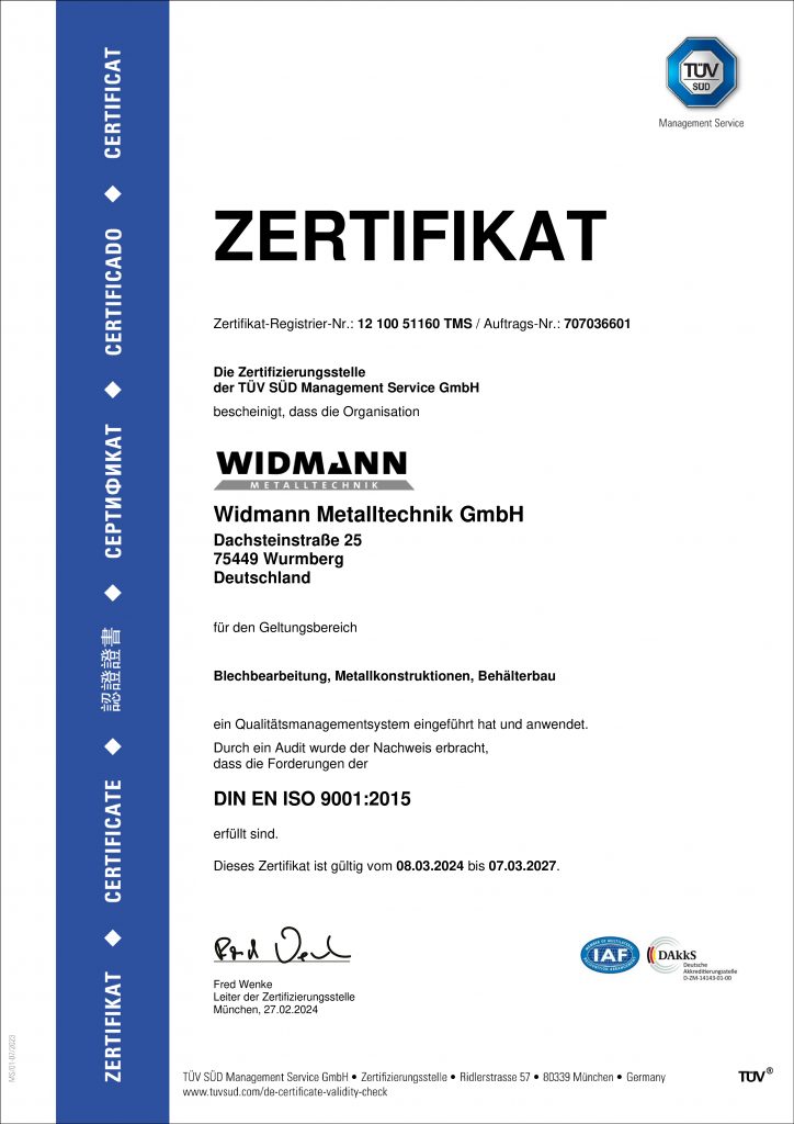 Unser Qualitätsmanagement ist zertifiziert nach ISO 9001.
